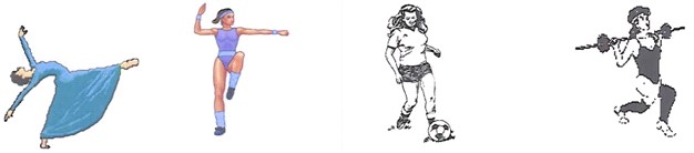 | Activity Numbers Eating 1. Eating a meal 2. Snacking Work 3. Working (e.g., part-time job, child care) (list) _________________________________ 4. Doing house chores (e.g., vacuuming, dusting, washing dishes, animal care) 5. Yard Work (e.g., mowing, raking) After School/Spare Time/Hobbies 6. Church 7. Hanging around 8. Homework 9. Listening to music 10. Marching band/flag line/drill team 11. Music lesson/playing instrument 12. Playing video games/surfing Internet 13. Reading 14. Shopping 15. Talking on phone 16. Watching TV or movie Transportation 17. Riding in a car/bus 18. Travel by walking 19. Travel by bicycling Sleep/Bathing 20. Getting dressed 21. Getting ready (hair, make-up, etc.) 22. Showering/bathing 23. Sleeping | School 24. Club, student activity 25. Lunch/free time/study hall 26. P.E. Class 27. ROTC 28. Sitting in class Physical Activities and Sports 29. Aerobics/aerobic dancing 30. Basketball 31. Bicycling 32. Bowling 33. Calisthenics (e.g., jumping jacks, sit-ups) 34. Cheerleading 35. Dancing (social, recreational) 36. Dancing (ballet, jazz, modern, tap) 37. Field hockey 38. Frisbee 39. Golf 40. Horseback riding 41. Ice/roller skating 42. Jogging/running 43. Karate/judo/martial arts/self-defense 44. Rollerblading 45. Skateboarding 46. Soccer 47. Softball/baseball 48. Stationary exercise machines (e.g., cycle, ski machine, stair climber, treadmill) 49. Street hockey 50. Swimming, water exercise 51. Tennis 52. Volleyball 53. Walking (briskly) 54. Weight/circuit training 55. Gymnastics/tumbling 56. Kickboxing/Tae Bo 57. Track and field 58. Trampoline 59. Other________________________________ |