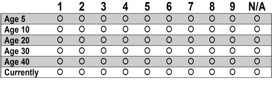 Participants are instructed to choose the picture from the pictogram that they think represents their actual size at a specific age or, as instructed and when appropriate, circle the size they would ideally like to be at another age or currently. The pictograms can also be used to provide input on body size or body image of participants’ children. Proxy assessments are appropriate for participants’ children only and not for other adults. See Protocol Text for more detail.