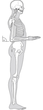 1.    Position the SP. Ask the SP to turn so that you stand facing his or her right side. Have the participant stand upright with the weight evenly distributed on both feet, the shoulders relaxed, and the right arm hanging loosely at the sides. Flexing or tightening the arm muscles will yield an inaccurate measurement.
