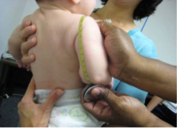 In this study, the length of the upper arm is measured to obtain reliable arm circumference (Section 3.4.7). Exam staff will measure the upper arm length on participants aged 2 months and older.