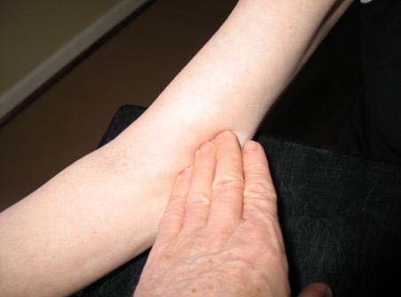 iv. Have the participant relax arm along side of the body.